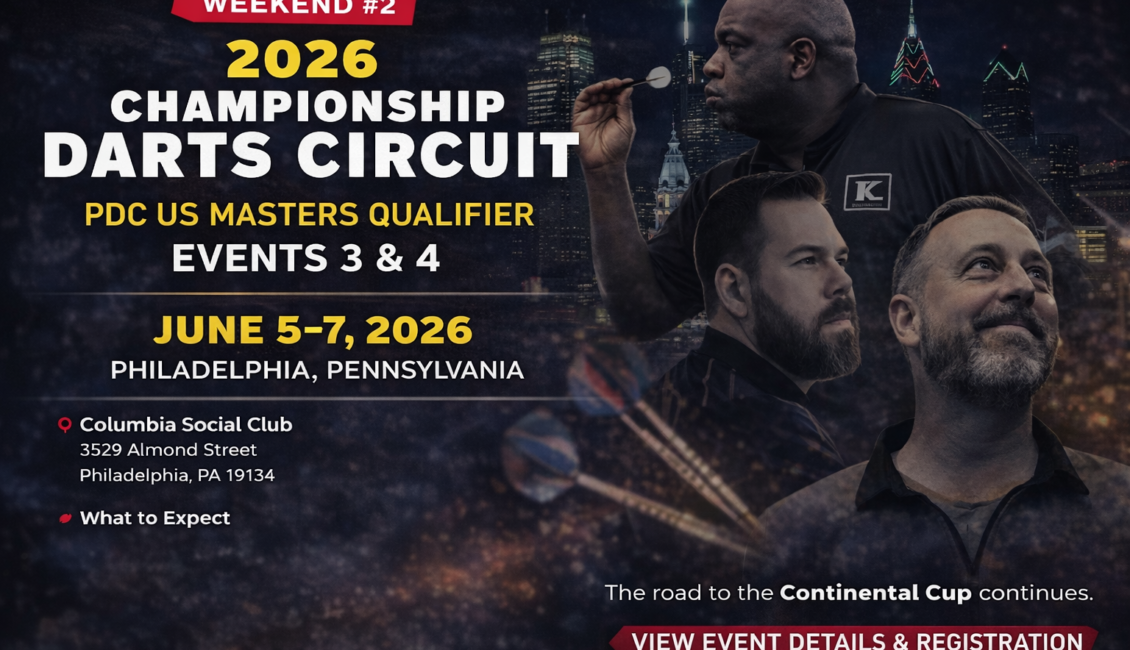 Weekend #2 of the 2026 Championship Darts Circuit continues the tour with high-level competition, valuable tour points, and PDC qualification opportunities in Philadelphia, Pennsylvania.